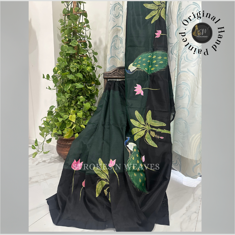 This saree is ideal for special occasions, festivals, or cultural events, and its unique hand-painted design ensures that you’ll stand out with elegance and grace.