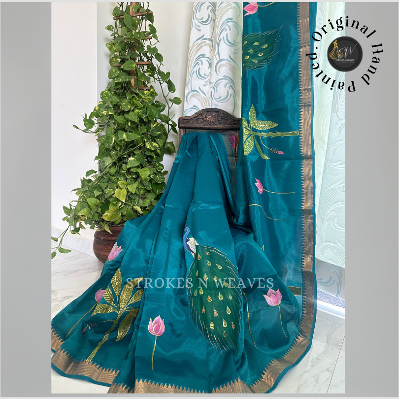 This saree is ideal for special occasions, festivals, or cultural events, and its unique hand-painted design ensures that you’ll stand out with elegance and grace.